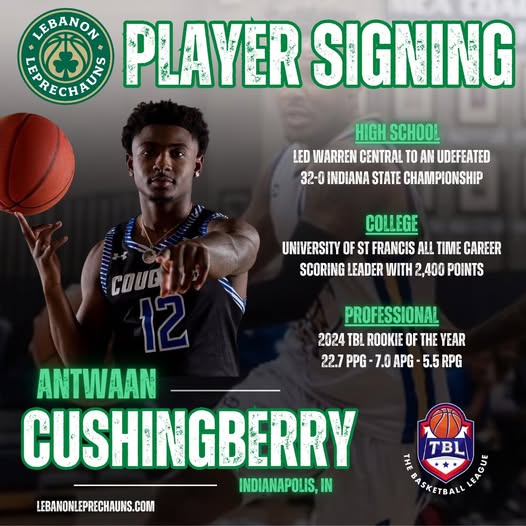 We are excited to welcome Indiana’s own Antwaan Cushingberry to the Lebanon Leprechauns organization! He spent the past two TBL seasons with the Great Falls Electric where he earned the league’s Rookie of the Year award in 2024.